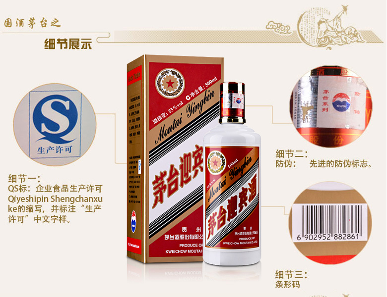商品名称:53°茅台迎宾酒500ml 生产厂家:茅台